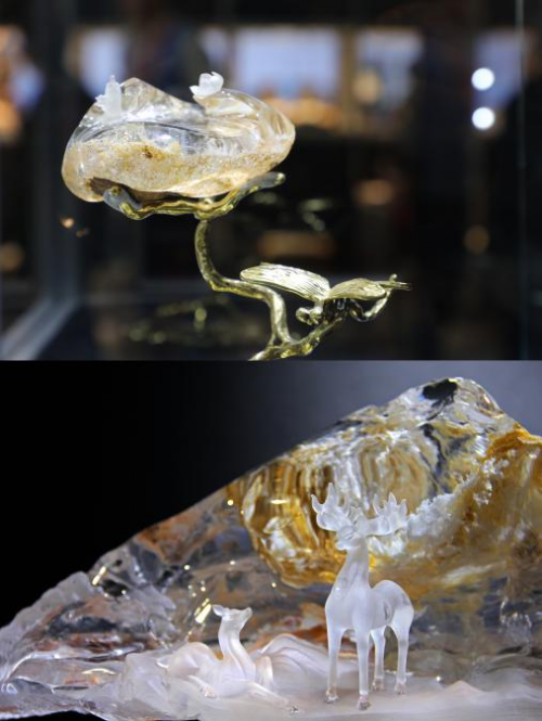 水晶矿物展团的另一大看点是东海水晶闻名遐迩的雕刻工艺。您将在此欣赏到多件融合传统雕刻工艺与现代设计的水晶艺术品,品味匠人们以精湛技艺为每件水晶作品所注入的艺术哲思。无论您是珠宝收藏家、时尚爱好者还是普通消费者,相信这些凝结巧思与匠心的点睛之作都将让您不虚此行。